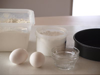 ◇材料(直径18センチのデコ型一台分) 卵白 2個分 卵黄 2個分 砂糖(卵白用) 60グラム 砂糖(卵黄用) 15グラム 薄力粉 80グラム ベーキングパウダー 小さじ4分の3 牛乳 15CC