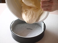 4.最後に牛乳を回し入れて馴染ませたら、型に流し入れて中央をややへこませます。これで準備完了です。