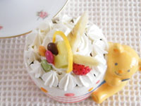 7.ここからはデコレーションです。それぞれのケーキ型にシロップを塗りフルーツやチョコレート、クリームを盛り付け出来上がりです。