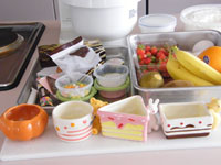 デコレーション用として 生クリーム、チョコレート、バナナ、ベリー、キウィ、オレンジ、ポッキーなど |
