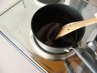 1.お鍋にチョコレート・バター・生クリームを入れ弱火にかけます。チョコレートがとけ、全体が均一になじんだら火からおろしておきます。