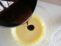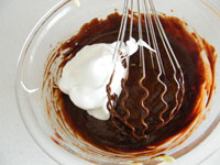 3.卵黄をミキシングしたところへ「1」のチョコレート生地を加え、再び泡立てます。全体が均一になじんだらOKです。