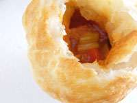 ●可愛いハートのカップにお気に入りのスープを注ぎ、冷凍のパイを被せます。卵を塗って190度のオーブンでこんがりキツネ色に焼き上げましょ!サクサクパイ生地をスプーンの先で崩しながら召し上がってください。寒い季節にぴったりの素敵な一品です。