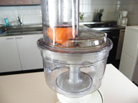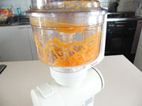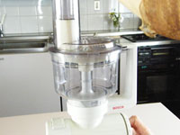 2.ボッシュ・コンパクトミキサーの別売り「マルチブレンダー」にシュレッドディスクを装着して、大根をセットします。高速の「4」で一気にカットしましょう。続けて人参もカットします。