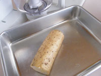 1.ボッシュ・コンパクトミキサーの別売り「マルチブレンダー」にシュレッドディスクを装着して、長芋をセットします。(粗い目の方)