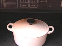 190℃のオーブンに入れて25分炊きます。くれぐれもふたを忘れずにネ!