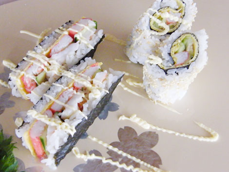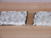 MEMO 上の写真の右側に写っている海苔巻きも、ご飯ののっている海苔シートで作りました。