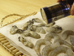 1.むき海老・カキはそれぞれ洗い、軽く塩・コショウをしキッチンペーパーで水気をよくきります。メインの食材の準備はこれでOK。