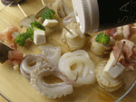 ●不思議・・・?・・・ただのせて焼いただけなのに、美味しいのはなぜ?ガーリックとオリーブオイルのせい?それとも食材が新鮮だったせいでしょうか?この冬の定番のメニューにいきなりのランクインしそうなエスカルゴ風おつまみ。カキと海老があまりの美味しさにだったので、調子にのって今度はイカ・ホタテ・エリンギ・ブロッコリー・鶏のもも肉でエスカルゴ風です。こちらの方もたいへん好評でした。どうぞ皆様ぜひお試しくださいませ。