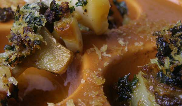 先ほど作ったバジル風味のソースをのせ、一番最後にパン粉を振り180度のオーブンで10〜13分焼きます。