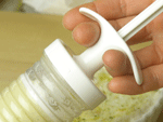 3.アイシングセットの登場です。口金はその場で簡単に取替えることができますから、あれこれいろんな形をお楽しみください。種類は全部で8種類、まずどれから試してみましょうか?天板にオーブンペーパーを敷きその上に搾り出し、卵を塗って焼き上げればおつまみとしてもなかなかいけます。