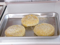 7.あとはフライを作るときの要領です。小麦粉はつけませんが、溶き卵、そしてパン粉の順番で衣をつけます。