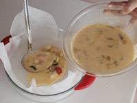 4.「3」の卵液の中に「2」の具をすべて入れます。均一になるようかき混ぜます。これであとは加熱するだけです。