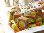 ◇ホームパーティー用に「ミニだけどロング缶」で焼いた角型食パンをあらかじめ焼いておきます。ミートローフとパンをカットしそれぞれ盛り付けます。偶然のように見せかけた、パンのサイズとミートローフのサイズがなぜか同じこの現象・・・私ひとり無意識にガッツポーズしていたように思います。