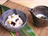 とろろを添えて、葉蘭を敷いたらちょっぴり粋なご飯に変身です。
