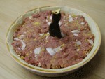 具として(直径25.5センチのパイ皿の場合) 豚ひき肉 130グラム 牛ひき肉 260グラム ブラウンマッシュルーム 3〜4個 ゆで卵 4個(厚めの輪切り) パン粉 カップ3分の1 卵(具のつなぎ用として)1個 塩 小1 コショウ 適量 ナツメッグ 小3分の2 バジル(乾燥のもの) 小1と2分の1 カレー粉 小2分の1 |