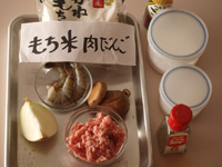 ●餅米肉団子用調味料(豚ひき肉100グラムに対しての分量です)