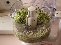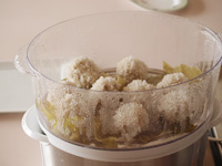 1.キャベツを蒸すところからスチーマーの出番です。蒸気の中でキャベツがしんなりしたら、取り出し水気を切り他の材料と一緒にボッシュのマルチブレンダーでチョップします。