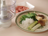 1.「餅米肉団子」用の材料をボッシュのマルチブレンダーでチョップします。