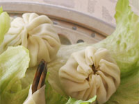 注:蒸す際にはレタスを葉をステンレスのスノコに敷いてからシューマイ、餃子を並べてください。これでスノコに皮がこびりつくことなく、きれいに蒸し上がります。