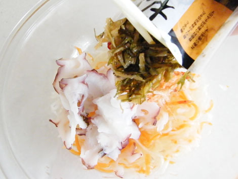 5.煮汁を50CCほど容器にとり、そこへ塩一つまみを入れてよくかき混ぜます。塩は溶けにくいのでここで完全に溶かしてから煮汁に戻します。最後にひと煮立ちさせてもう一晩置いて出来上がりです。