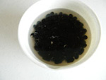 3.一粒食べてみて、ふっくら柔らかくなったら分量の砂糖の3分の1を加えます。10分ほど煮立て火を消します。このまま一晩おきます。