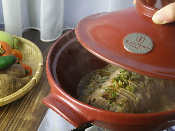 ●エミール・アンリの「ココット・タイ」は蓋に空気穴がないのです。だから煮込み料理を上手に仕上げてくれます。弱火でコトコト、コトコト・・・適度な圧力がかかるのでしょう。大きなかたまりの肩ロースは「ココット・タイ」のお陰で、ジューシーにとても美味しく煮上がりました。