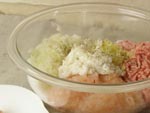 ■豚ひき・・・150グラム ■むきエビ・・・150グラム 玉ねぎ・・・2分の1