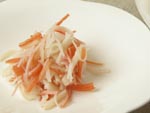 5.気持ちと時間に余裕があったら、上にカニカマを刻んだもの、 はんぺんを刻んだものをのせて仕上げてみましょう。