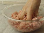 3.ごま油以外の材料を全てボウルに入れ、手で粘りがでるまでよく混ぜ合わせます。粘りが出たら最後にごま油をいれ、さらに合わせて中身は出来上がりです。