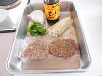 材料(2枚分) 合挽き肉 180グラム 玉ねぎ 3分の1個 卵 2分の1個 パン粉 大匙山盛り1杯 塩 小匙2分の1 コショウ パパっと3ふり