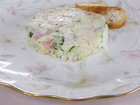 MEMO 普段何気なく食べていたポテトサラダはフライの横っちょに添えられるおかずですが、このゴージャスポテトサラダならメイン料理に格上げです。1センチの厚みで丸く広げたポテトサラダは、お味まで美味しく感じます。