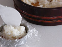 注:カットするときには包丁を必ず1回ずつ濡らして使いましょう。ご飯粒が付いたままの包丁でカットしようなんて思ってはダメですよ。