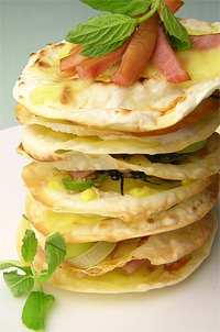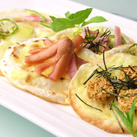 パンケーキパンで餃子の皮のピザ風おつまみ
