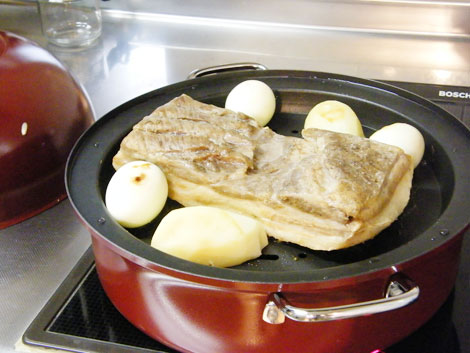 MEMO 温度計がついているお陰で、ドームの中の温度管理がいたって簡単なのが良いですね。一番初めにトライするときは香りの強い香辛料は控えめが良いと思います。またベーコンはさまざまな作り方がありますが、今回はノルディック社のスモーク専用のお鍋をキッチンで使いこなすためのレシピにいたしました。これならベーコンに限らず、スモークチキンにスモークサーモン、あるいは燻製卵にスモークチーズなど、穴あきプレートにお好みの食材をのせてスモークのあれこれをお楽しみいただけると思います。