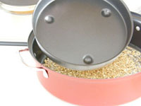 6.火にかけて温度が上がるのを待ちましょう。換気扇を回すのを忘れずに。カバー上部の空気穴がありますが、終始ふさいだ状態でOKです。