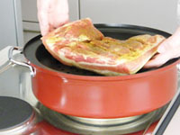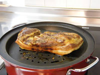 注:「4」のお鍋の準備ですが、キッチンで調理をする場合は、ドリップパンに水150CCを注いでお使いいただく方をお奨めです。この方がお部屋にスモークの匂いが充満しません。また後片付けも簡単です。
