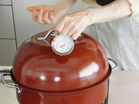5.カバーをして温度計を取り付けます。温度計が食材に接しないよう確認しましょう。