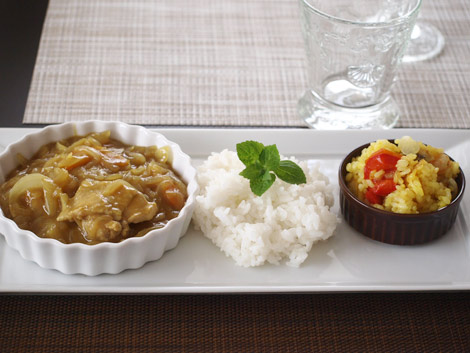 MEMO この「玉ねぎの甘味が詰まった特上カレー」は、水を一滴も入れずに仕上げますので、タジン蓋が大活躍!フライパンの中の蒸気が外に漏れることなく、タジン蓋ならではカレーに仕上がります。水なし!玉ねぎの水分とろみのお陰でとってもヘルシーなカレーになりました。