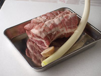 2、長ねぎと生姜の上に肉の塊をのせます