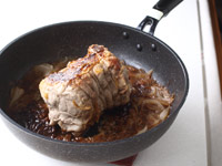9、さらにもう一度蓋をあけて肉をひっくり返し、15分蒸焼きします。(ここまでで15分×4回)