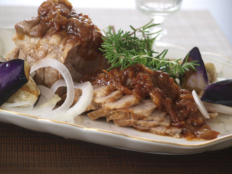 スライスした焼き豚に添えていただきます。