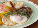 まん丸ホットケーキと目玉焼き