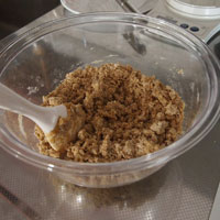 - ボウルに、ホットケーキミックス・黒豆きな粉・粉砂糖・卵・バターをすべて入れよく混ぜます。初めはパラパラですが徐々に粉気がしっとりした状態になってきます。小さめのしゃもじで混ぜるとやり易かったです。