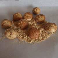 - 寝かした生地を取り出し小さな丸を作ります。そして天板に並べます。40〜45個くらいになります。
