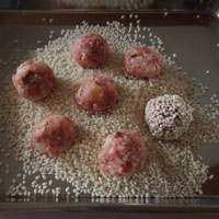 - 手のひらでまるめ均一な丸にします。