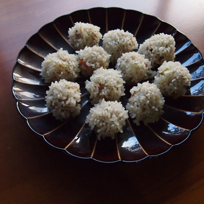 - 餅米をまぶします。