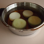 圧力鍋の蓋をして、高圧で3分。火を止め、圧力が下がるをを待ちます。