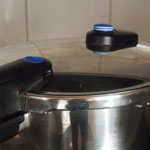 - 完全にバルブが下がり、内部の圧力が下がったらロックを解除して蓋を開けます。そこへカレールーを割り入れ溶かしながら5分煮込みます。これで出来上がりです。
